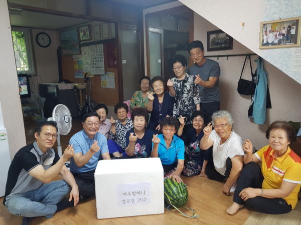 김경숙 어수할머니경로당 회장은 “항상 경로당에 신경써주셔서 너무 감사드리고, 이번에 지원해준 삼계닭과 수박을 맛있게 먹고, 무더운 여름 잘 이겨내겠다.”고 전했다.