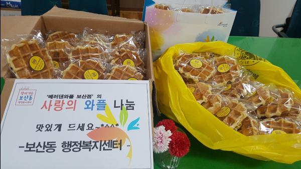 보산동 맞춤형복지팀, 베러댄와플 보산점으로부터 기탁받은 와플 50개를 관내 한부모가정 50가구에 전달