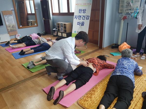 한방자연건강마을은 찾아가는 한의약 보건 서비스로 의료기관 접근성이 낮은 지역의 경로당 및 마을회관에서 주 1회 8주간 운영되는 한의약 통합건강증진 사업이다.