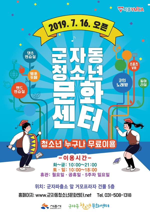 군자동 청소년문화센터는 시에서 매입 후 2019년 1월 내부 리모델링 공사를 추진해 4월 준공 완료한 연면적 722.9㎡의 시설이다. 북카페, 댄스연습실, 코인노래연습실, VR실, 동아리실 등이 갖춰져 있다. 지난 5월 시흥기독교청년회가 위탁단체로 선정돼 다양한 공간을 활용한 청소년들의 자기주도적이고 창의적인 활동 프로그램을 운영할 예정이다.