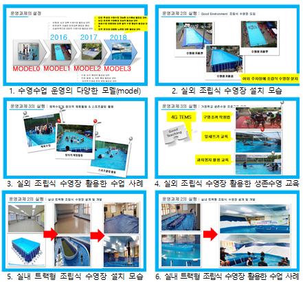 정창영 교사는 교내 조립식 수영장을 활용한 생존수영 수업 사례를 학교 교사가 이해하기 쉽게 제시해 막막하게 여겨왔던 수영수업을 학교에서 실시할 수 있는 방안을 발표한다.