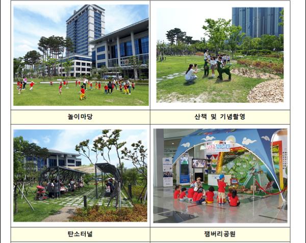 1코스 “잔디밭 코스”는 놀이마당에서 소규모 놀이활동과 자연형 실개천 주변 산책, 청사 1층 로비의 잼버리 홍보관과 탄소 전시관을 관람할 수 있도록 구성되었고, 2코스 “실개천 코스”는 깊이 25㎝의 인공형 실개천에서 발 담그기 놀이를 하고 1층 로비 잼버리 홍보관, 탄소전시관을 관람할 수 있게 했다.
