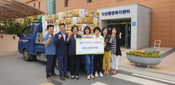남양주시 다산행정복지센터는 12일 희망나눔넷에서 다산1동 지역사회보장협의체와 다산희망케어센터에 20kg 감자 100박스를 기부했다고 전했다.