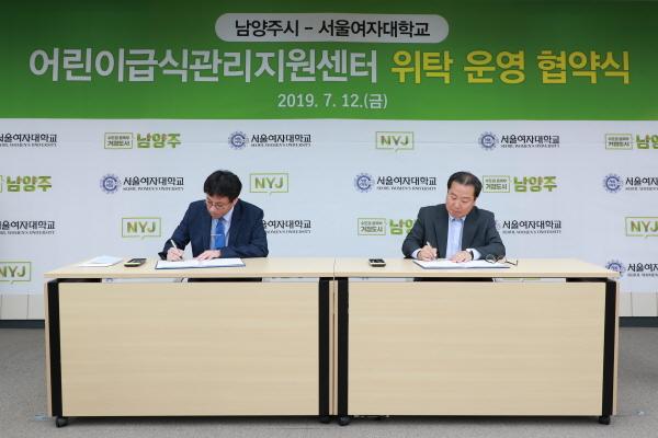남양주시는 12일 시청 여유당에서 남양주시 어린이급식관리지원센터 수탁기관으로 선정된 서울여자대학교 산학협력단과 위탁운영 협약을 체결했다.