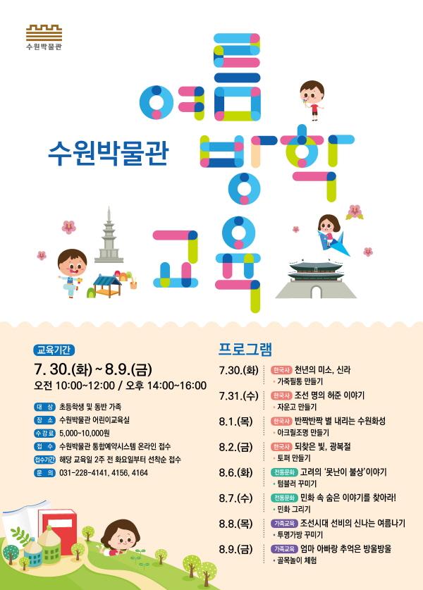 수원박물관은 여름방학을 맞아 초등학생들이 역사와 전통을 배울 수 있는 교육프로그램을 마련한다.