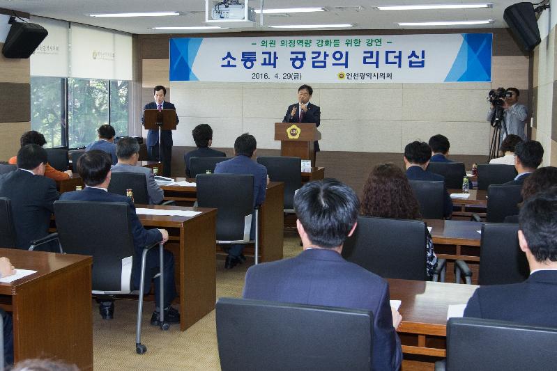 인천광역시의회(의장 노경수)는 지난 29일 의회의총회의실(3층)에서 「의원 의정역량 강화를 위한 강연」을 의원과 직원들을 대상으로 실시하였다