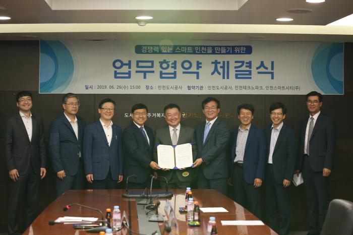 인천도시공사(사장 박인서)와 인천테크노파크(원장 서병조), 인천스마트시티(대표이사 성기욱)는 시민이 체감할 수 있는 스마트 인천 조성을 목표로 4차 산업혁명 기반의 지역 활성화 및 기업육성 협력을 위한 업무협약을 26일 체결했다.