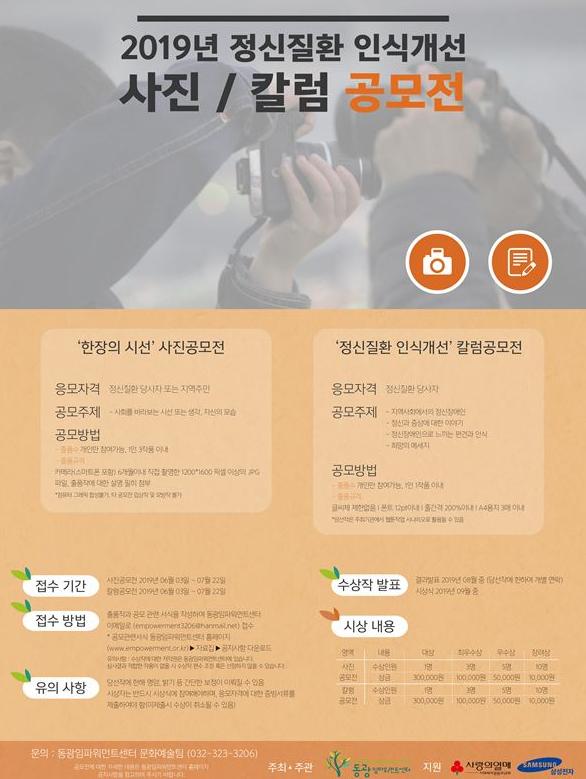 부천시와 부천시보건소가 지원하고 부천동광교회가 운영하는 정신재활시설 동광임파워먼트센터에서 정신질환 혐오사회 구조의 변화를 위해 사진·칼럼 공모전을 개최한다.
