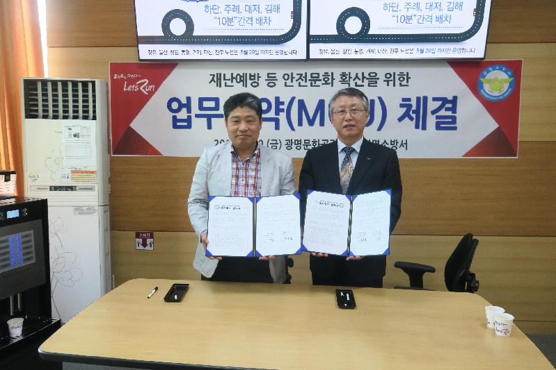 광명소방서(서장 김권운)는 지난 29일 한국마사회 광명문화공감센터 회의실에서 한국마사회 광명문화공감센터(센터장 김갑렬)와 재난예방 등 안전문화 확산을 위한 업무협약식을 가졌다고 밝혔다.