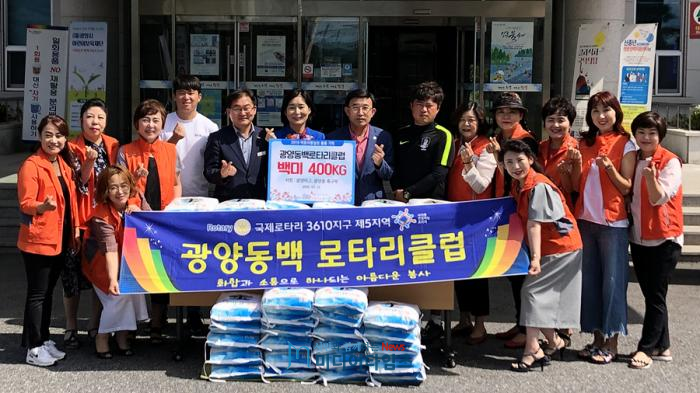 이날 전달된 후원물품은 6. 5.(수) 광양동백로타리클럽 회장단 이·취임식에서 축하 화환 대신 받은 쌀 400kg로, (재)광양시사랑나눔복지재단을 통해 광양중학교와 광양여자고등학교 축구부에 각각 쌀 200kg씩 전달했다.