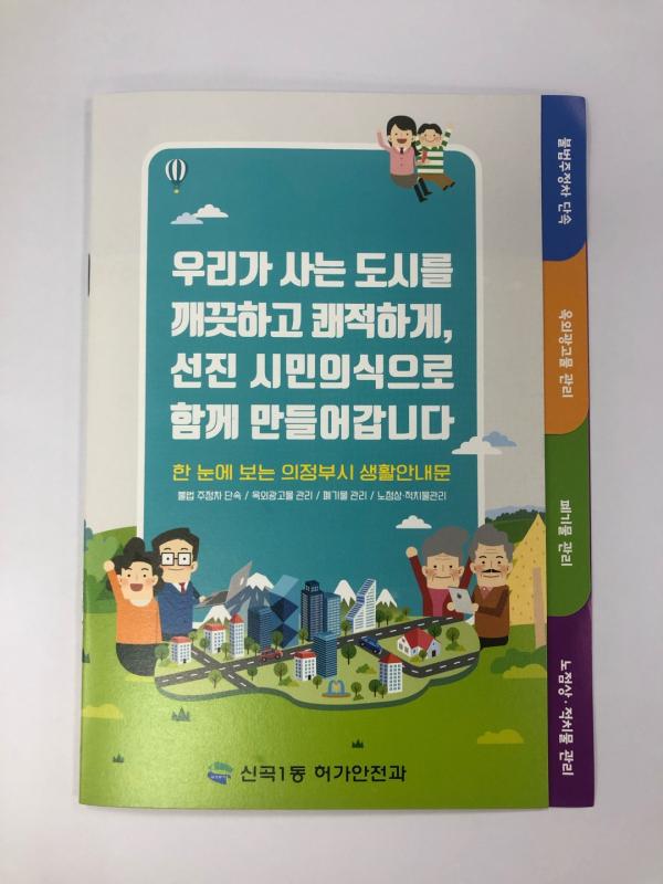 의정부시 신곡1동 행정복지센터 허가안전과는 지난 12일 불법 주·정차, 불법광고물, 폐기물 무단투기 등 불법행위 근절을 위해 이와 관련한 내용들을 묶어 한눈에 보는 리플릿을 제작했다.