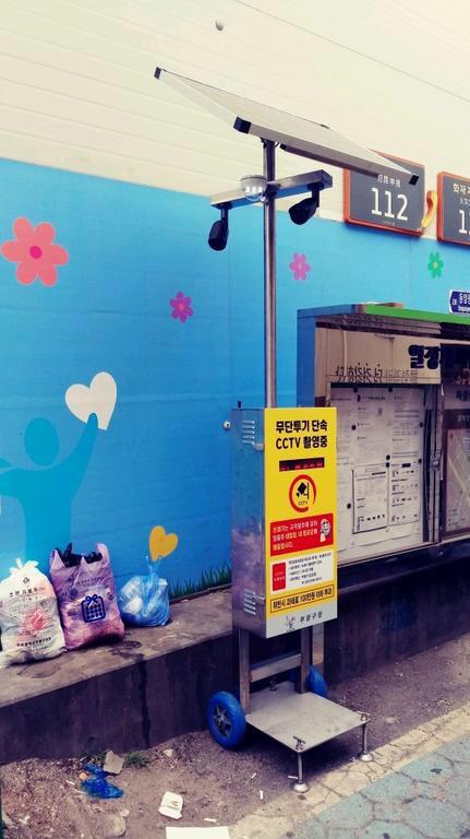 무단투기 단속용 말하는 이동형 CCTV는 쓰레기를 버리는 사람이 일정구역에 나타나면 불이 켜지며, LED 경고판이 깜빡이고 4개 국어로 쓰레기 무단투기 금지 방송을 송출한다.