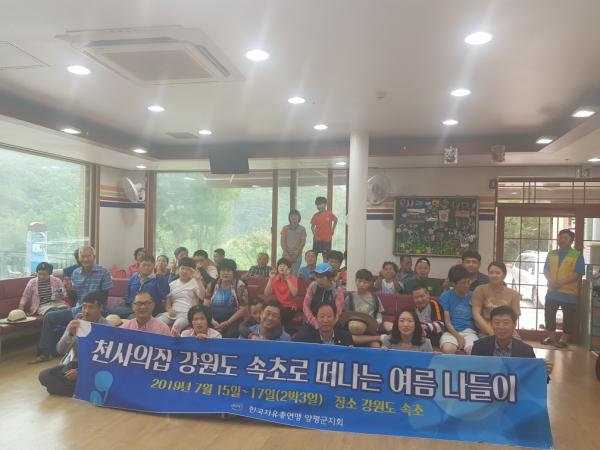한국자유총연맹 양평군지회는 15일 양평군 양서면 소재 중증장애인 복지시설인 천사의 집을 방문해 강원도 속초 나들이 지원으로 회원 약 500여명의 순수회비 1백만원을 전달했다고 밝혔다.