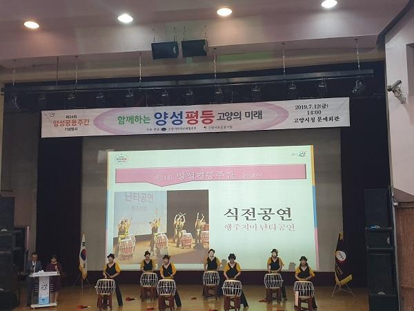 하와이 훌라댄스 및 난타공연으로 시작된 이날 기념식에서는 여성의 권익증진과 양성평등 문화확산을 위해 기여한 유공자 표창 수여식이 진행됐으며, 양성평등한 고양시를 만들기 위한 의지를 다지는 양성평등 실천다짐 시간을 가졌다. 또한 경기도가족여성연구원의 후원으로 3.1운동과 임시정부 수립 100주년 기념 ‘세상을 변화시킨 여성의 기록, 경기도지역 여성독립운동가들’에 대한 전시도 마련해 양성평등행사에 의미를 더했다.