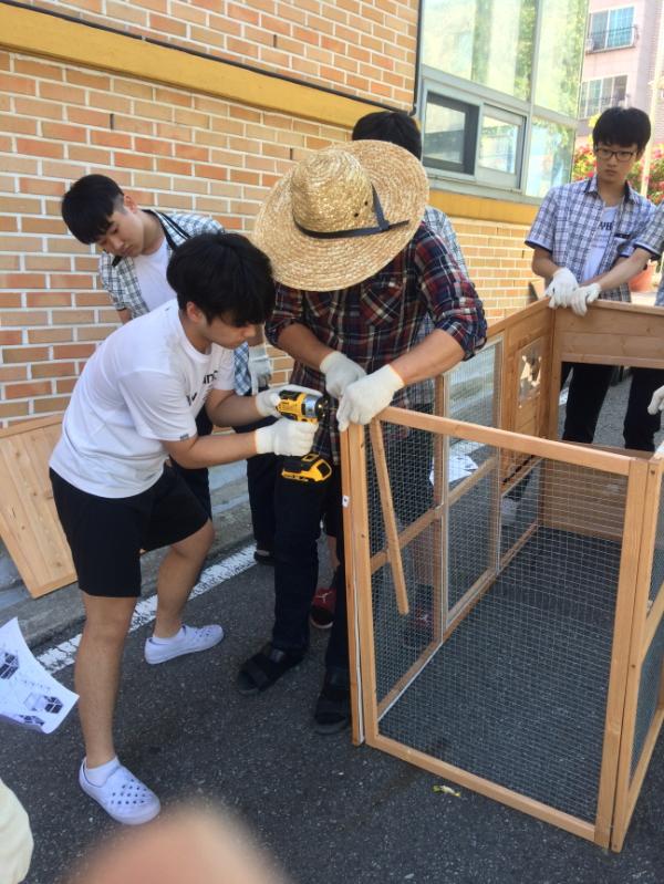 생명공학 동아리 사업과 두드림 사업을 연계해 유정란을 부화시키고 학생들의 힘으로 닭장을 만들어 닭들을 키워왔다.