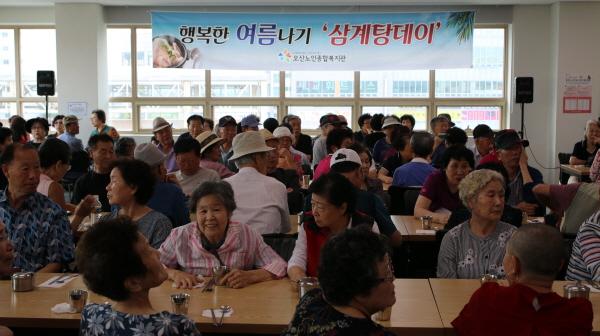 오산노인종합복지관은 지난 12일 복지관 경로식당에서 초복을 맞아 지역 내 어르신을 대상으로 ‘2019년 복맞이 삼계탕 나눔 행사’를 진행했다.