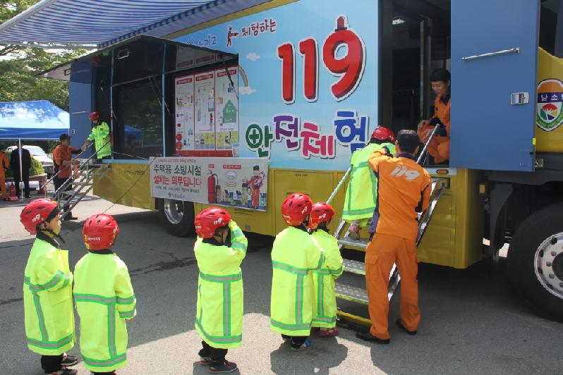 이동안전체험차량은 어린이들이 영상교육, 지진체험, 화재신고 전화체험, 비상구 찾기 체험, 장애물 및 암흑탈출을 체험할 수 있도록 제작된 소방안전교육 전문 차량으로서, 어린이 안전의식 고취를 위하여 매년 1회 운영 되었으나, 2016년부터는 체험을 확대하여 3회에 걸쳐 운영될 계획이며 이날의 체험은 2016년도 1회차 교육이었다.