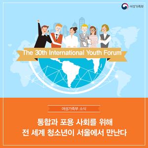 여성가족부가 후원하고, 한국청소년단체협의회와 한국교육심리학회가 공동 주관하는 ‘제30회 국제청소년포럼’이 국제청소년센터에서 16일부터 오는 23일까지 열린다.