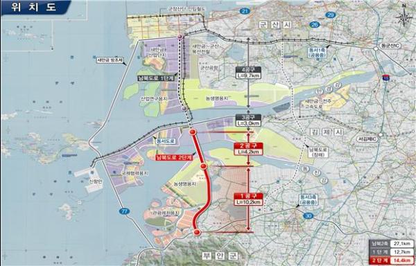 한편, 남북도로 2단계는 새만금 내부를 동서남북으로 연결하는 십자형 주간선도로를 완성하는 마지막 연결구간으로, 2023년 8월 새만금에서 열리는 세계잼버리대회 이전에 개통하는 것을 목표로 건설 중이다.