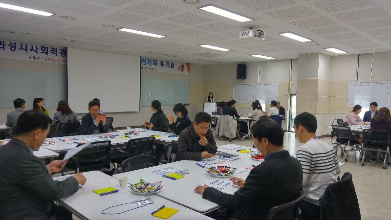 교육 후에는 화성시사회적공동체지원센터, 화성시사회적경제협의회, 화성시마을넷위원회 등이 모여 지난 3월에 실시된 1차 워크숍에서 제안된 다양한 사업 아이디어를 토론 형식의 워크숍도 진행됐다.