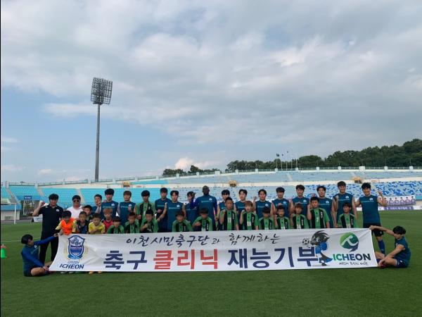 이천시민축구단은 지난 12일 이천 종합운동장에서 이천남초등학교 축구부 20명을 대상으로 축구 교실을 진행했다.