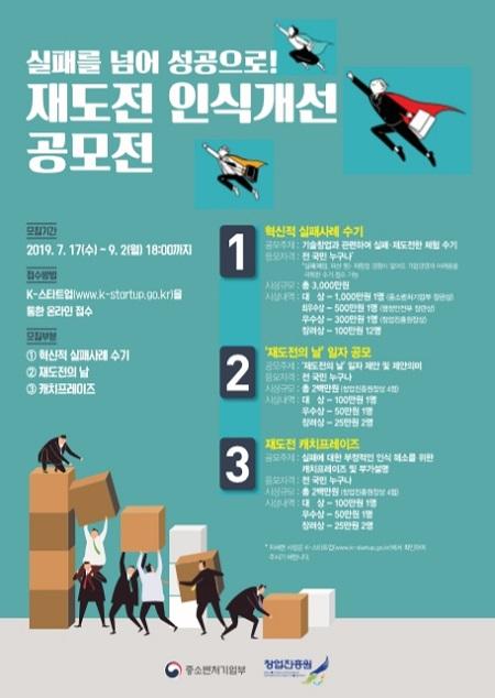 중소벤처기업부는 ‘2019 재도전 인식개선 공모전’을 7월17일부터 시작한다고 밝혔다.