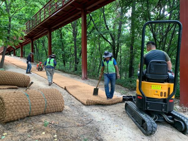공원관리사업소 담당공무원들도 직접 발로 뛰며 이들과 함께 공원산책로 야자매트를 설치하고 지주목을 재활용한 휀스 설치, 농업 기술센터로부터 굴삭기를 임대해 배수로 정비 작업 등 기술력을 요하는 작업까지 하며 해마다 3억 원 이상의 예산을 절감하고 있다.