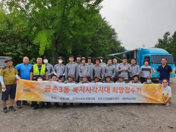 파주시 금촌3동은 지난 16일 지역사회보장협의체, 파주시 치매안심센터, 파주시자원봉사센터, 금촌3동 적십자 클로버 봉사단, 제9보병사단 30연대 군장병 등 민·관·군 50여명으로 구성 된 자원봉사자들과 함께 복지사각지대 대상자의 주거환경정비를 실시했다.