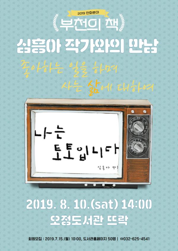 부천시는 2019 부천의 책 만화 분야에 선정 된 ‘나는 토토입니다’의 저자 심흥아 작가의 강연회를 오는 8월 10일 토요일 오후 2시 오정도서관에서 개최한다.