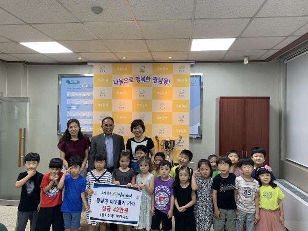 광주시 광남동에 위치한 남동 어린이집은 지난 16일 어려운 이웃을 위해 사용해 달라며 성금 40여만원을 광남동 행정복지센터에 기탁했다.