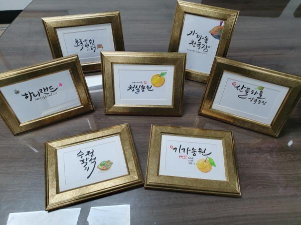 특히, 각 농가별 교육생 요구에 맞춰 캘리그라피 로고를 제작하고 수채화 작업을 진행해 교육의 만족도가 높았다.