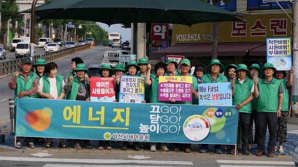 익산시 새마을회는 지난 16일 새마을지도자 100여명이 참여한 가운데 북부시장 사거리에서 출근길 시민들을 대상으로‘에너지 끄GO 닫GO 높이GO’를 주제로 하절기 국민 절전 캠페인을 진행했다.