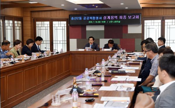 안병용 의정부시장을 비롯한 도·시의원 및 관련 공무원과 송산2동 주민대표 등 20여 명이 참석한 가운데 진행된 최종보고회는 송산2동 공공복합청사 실시설계완료에 따른 추진경과에 대한 주민들의 궁금증을 해소하고, 신축 청사의 청사진을 보고하는 자리로 마련됐다.