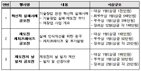 이러한 국내외 사례처럼 누구나 실패의 경험을 공유하고, 실패와 재도전의 가치를 확산하기 위한 공모전이 열린다.