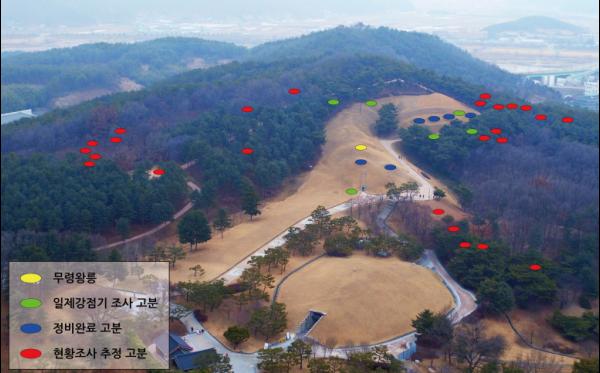 참고로, 무령왕릉은 1971년 6호분의 뒤쪽 배수로 공사 중 우연히 발견된 벽돌무덤으로 삼국 시대 무덤 중 주인을 알 수 있는 유일한 왕릉으로도 유명하다. 이후 1988년과 2018년 제단으로 추정되던 주변의 석축시설이 두 차례 조사된 것을 제외하면, 그동안 백제 왕릉과 왕실묘역의 실체를 규명하기 위한 학술조사가 미진했다고 해도 과언은 아니다. 현재는 무령왕릉을 중심으로 총 7개의 고분이 정비되어 있다.