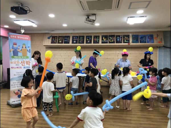교육 참가자들로 구성된 ‘with선학’봉사단은 이날 발대식을 진행하고 선학주민자치센터 북카페와 사랑유치원을 방문해 아이들에게 페이스페인팅과 풍선아트를 선보이며 나눔의 시간을 가졌다.