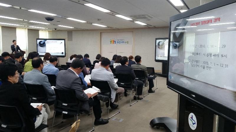 수원시가 2일 시청 중회의실에서 본청 및 사업소, 4개 구청, 42개동의 회계관련 팀장들을 대상으로 일상경비 사전 컨설팅 교육을 실시했다.