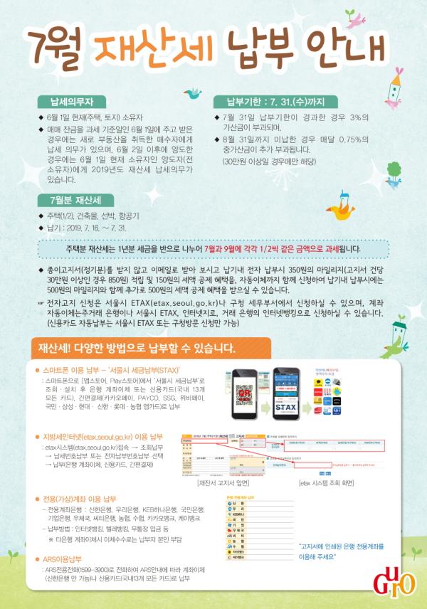 구로구가 소식지, 홈페이지 등을 통해 7월 재산세 납부 홍보에 나섰다.