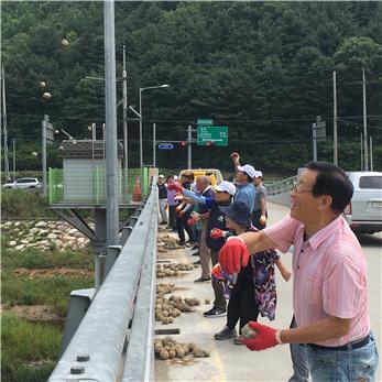연천군지속가능발전협의회 성기호 회장을 비롯한 20여 명의 위원은 지난 16일 실개천 살리기 사업의 일환으로 청산면 초성리에 위치한 신천교에서 ‘EM 흙공 던지기’ 활동을 펼쳤다.
