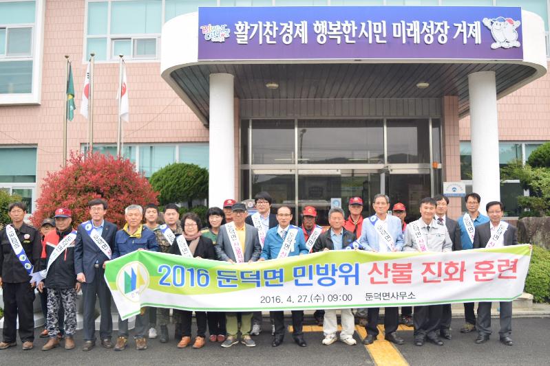 이번 민방위 산불 진화 훈련은 민방위 대장은 산불진화대, 주부 민방위는 진화지원반으로 구성되어 실시 되었으며, 민방위 대원들의 산불 감시 활동 강화를 통해 마지막까지 산불 예방에 만전을 다하겠다고 둔덕면은 밝혔다.