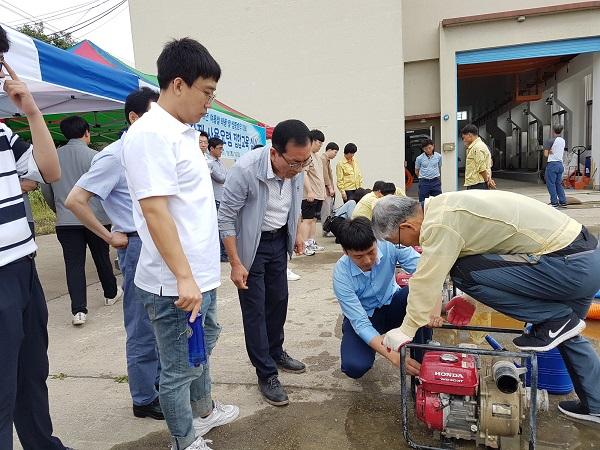 익산시는 18일 유천배수펌프장에서 읍·면·동 재난업무 담당자와 자율방재단원 60여 명이 참석한 가운데 태풍과 집중호우 등 여름철 자연재해를 대비하기 위한 양수기 및 수중펌프 사용요령 집합교육을 실시했다.