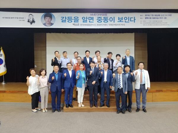 민세 안재홍 선생의 나라사랑 정신과 평생학습 실천 활동을 계승하기 위한 7월 중 조찬 다사리포럼이 18일 백승훈 한국외대 중동연구소 초빙연구위원의 ‘갈등을 알면 중동이 보인다’라는 주제로 평택시청 대회의실에서 개최됐다.