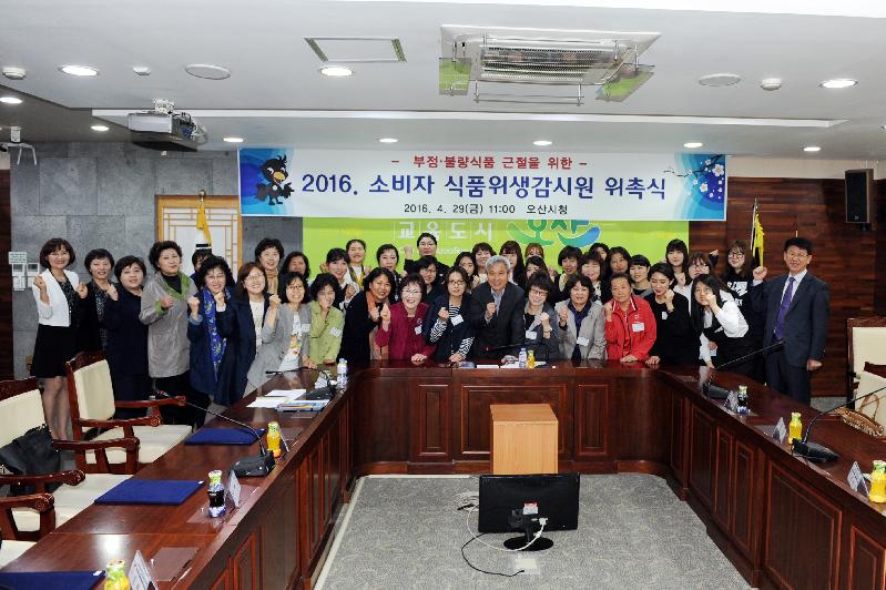 오산시(시장 곽상욱)는 지난달 29일 시청 상황실에서 '2016년 소비자식품위생감시원 위촉식'을 가졌다.