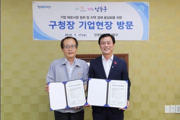 이강호 구청장은 산업현장에서 기업의 해외 판로 개척 및 수출지역 다변화 지원에 대해 논의했다. 또 기업과 근로자의 애로사항을 청취하는 시간을 가지며‘기업지원 및 일자리 창출협약’도 체결했다.