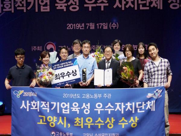 고양시는 지난 17일 양재 aT센터 그랜드홀에서 열린 고용노동부 주관 ‘2019년 사회적기업 육성 성과공유대회’에서 최우수상을 수상했다.