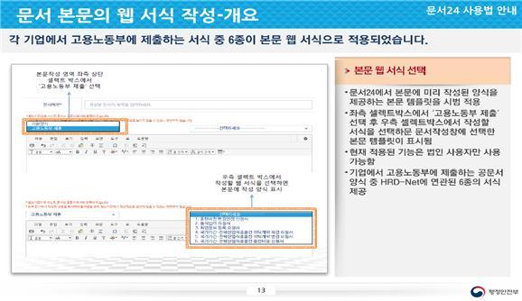 이번 시범사업의 일환으로 행정안전부는 고용노동부와 협의를 통해 지난 10일부터 전국의 ‘직업능력개발 훈련기관’이 편리하게 공문서를 작성할 수 있도록 ‘웹 서식’을 구현했다고 밝혔다.