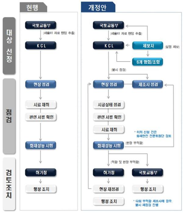시험성적서에 있는 성능과 현격히 다른 건축자재를 제조·유통한 자 등은 형사고발이 이루어지도록 지자체와 협업을 강화한다. 또한, 적발된 불법 건축자재 제조업체는 공장을 추가 점검해 위법이 시정되지 않은 제조업자는 형사고발할 계획이다.