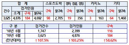 경찰청에서는 증가하는 사이버도박을 근절하기 위해 2019년 상반기에 도박전담팀을 신설하는 등 조직정비, 인력확대와 함께, 1월부터 6월까지 특별단속을 실시했다.