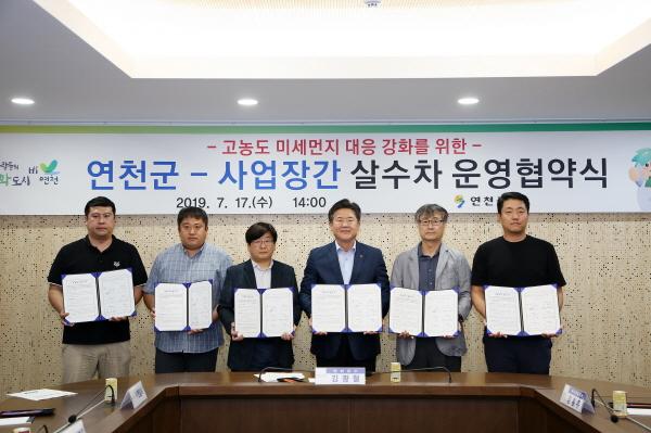 이번 공동 협약식은 고농도 미세먼지 발생 시 사업장에서 보유하고 있는 살수 장비를 사업장 주변 마을까지 확대·운영해 군민이 건강하고 쾌적한 삶을 누릴 수 있도록 미세먼지 집중 발생 기간 살수차를 운행할 예정이다.