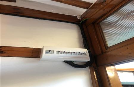 금번 공사는 현장점검 후 최종 선정된 한옥 8동에 작업 중이며, 그 내용은 세대분전반·차단기·노후전선 교체작업, 스위치·콘센트·조명기구 개선작업, 누전방지 접지작업, 단독경보형 감지기 설치이다.